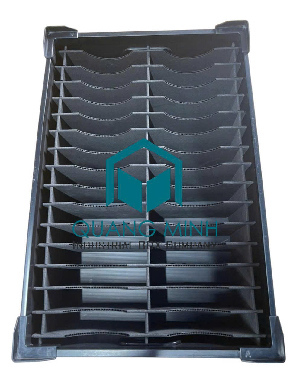 Thùng Danpla có vách ngăn và dán nhãn EVA của Quang Minh được thiết kế chuyên biệt cho các ngành điện tử, linh kiện, cơ khí chính xác, và logistics.